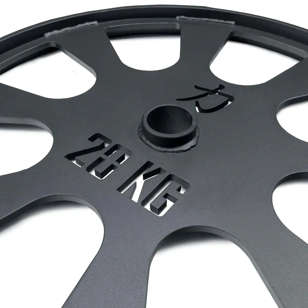 Diese Apollon-Räder sind vom ursprünglichen Stil der Eisenbahnwagenräder abgeleitet. Für heutige Trainingsgegebenheiten sind die Räder gewissermaßen genormt, damit sie im Gym leicht zu benutzen sind. Ein Rad wiegt jeweils 20kg und hat eine 50mm Hantelaufnahme. So können die Apollon Wheels auf jeder Stange mit 50mm Scheibenaufnahmen aufgezogen werden.