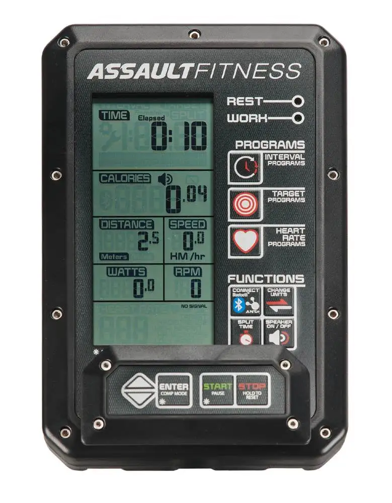 Das AssaultBike Elite hat nicht nur einen dickeren Stahlrahmen, solide Stahlkurbeln und eine Aluminium-Sattelstütze, sondern auch eine verbesserte Korrosionsbeständigkeit, einen größeren, bequemeren Sitz und ein größeres und klareres LCD-Display mit Comp-Modus und Bluetooth-Konnektivität.