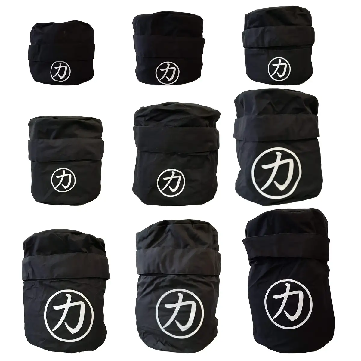 The sandbags come in 9 different sizes and should be filled to the desired weight accordingly.