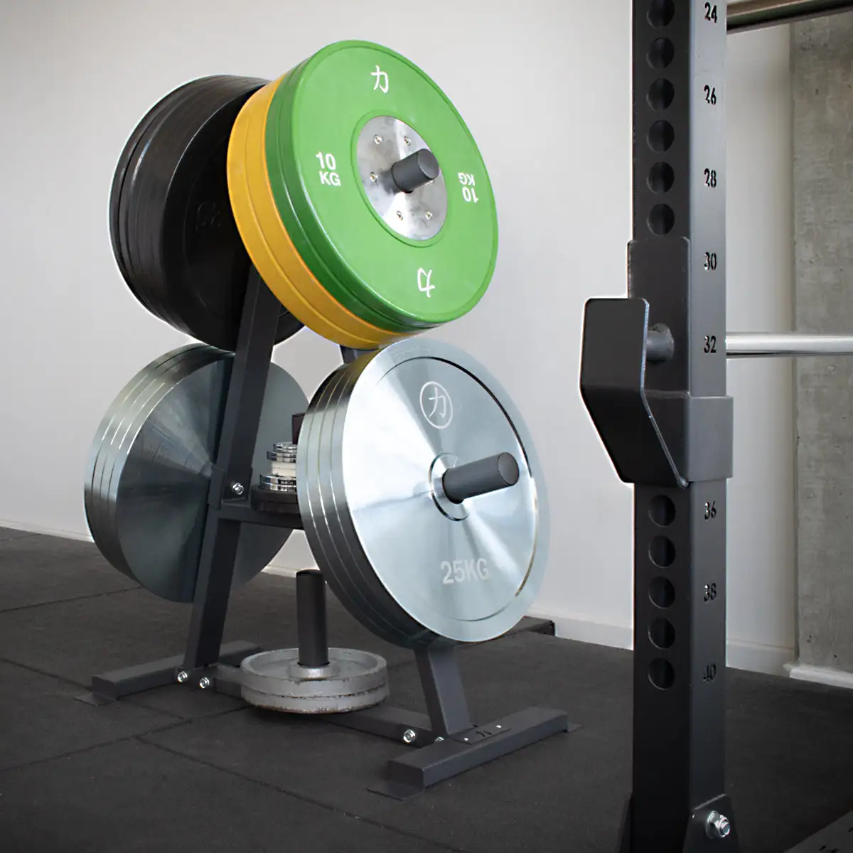 Der Gewichtsbaum ist aus robustem Stahl gefertigt, um die Last zu tragen. Matt-schwarz pulverbeschichtet, fügt sich der Gewichtsbaum optimal in den Raum mit anderen Trainingsgeräten ein.