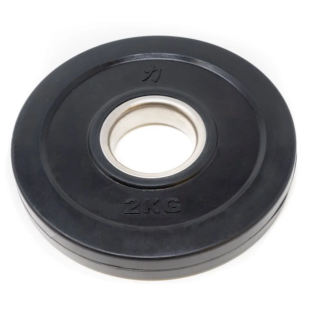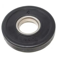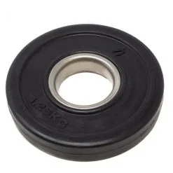 Die gusseisernen Scheiben sind mit schwarzem Gummi überzogen, dadurch kann sich keine Farbe ablösen. Das sieht nicht nur gut aus, sondern die Gummibeschichtung sorgt auch für guten Grip beim Handling der Scheiben und außerdem wird der Geräuschpegel deutlich reduziert, der beim Heben und das Be- und Entladen entstehen kann.