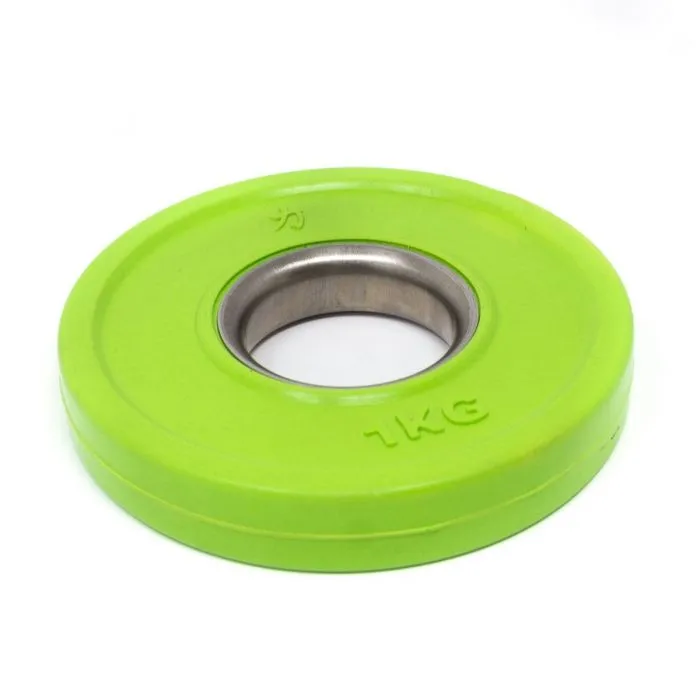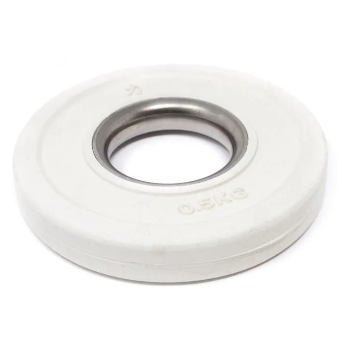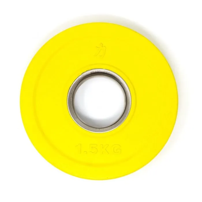 Der Stahlring der Hantelaufnahme macht das Laden zu einer reibungslosen Sache. Diese Scheiben sind ideal für olympische Langhanteln mit einer Scheibenaufnahme von 50mm geeignet und entsprechen den IWF/BVDG-Richtlinien. Steigerungen, wie im olympischen Gewichtheben üblich, ab mindestens 1kg (2×0,5kg) bis hin zu den „kleinen Roten“ von je 2,5kg sind mit dem Set abgedeckt. Diese kleinen Hantelscheiben, häufig auch fractional plates oder auch change plates genannt, haben in diesem Set ein Gesamtgewicht von 15kg.