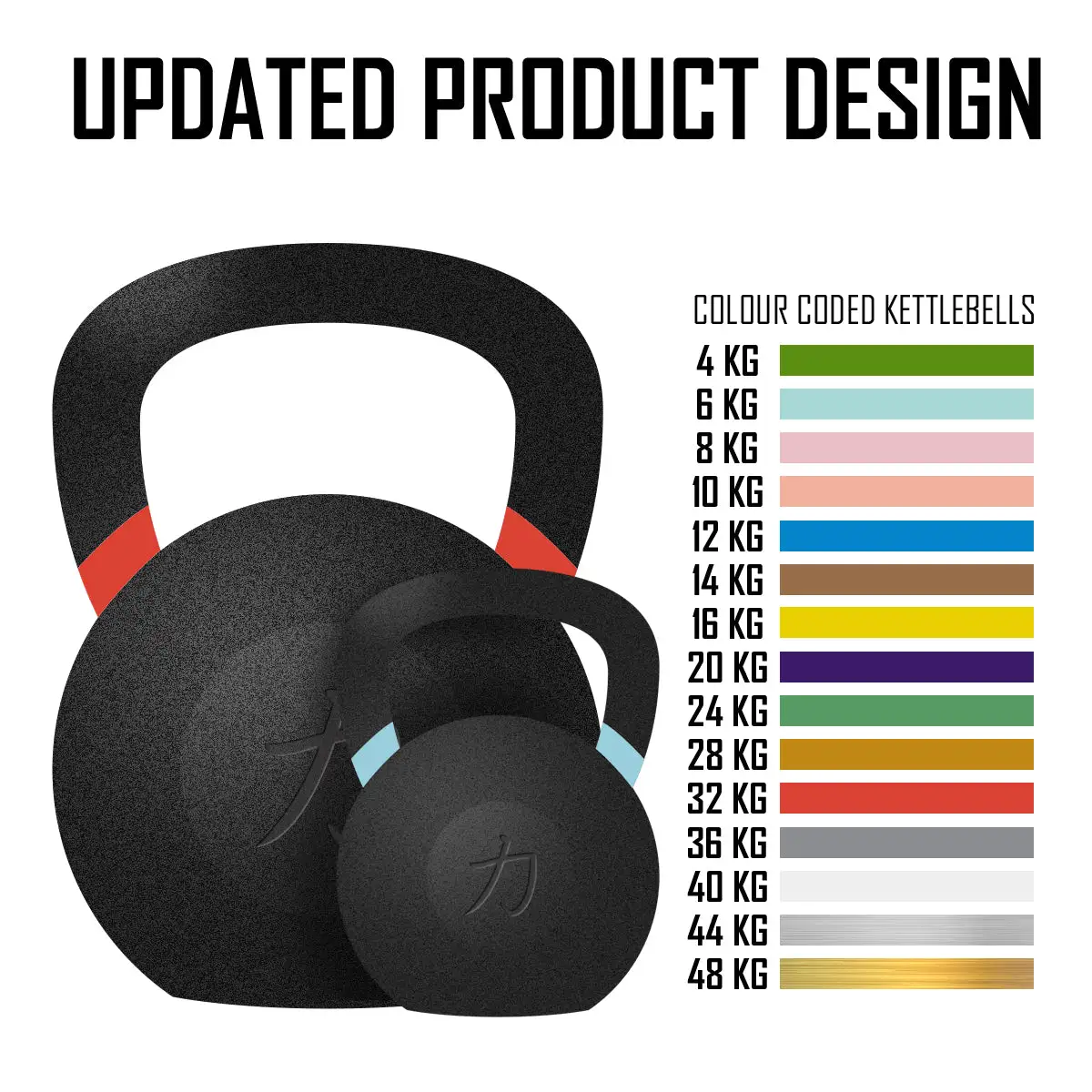 Hinweis: Unsere klassischen Kettlebells haben ein Update erhalten. In Zukunft werden die Gusseisen-Kettlebells zur leichteren Erkennung eine farbliche Markierung an den Griffen haben. Der noch restliche Bestand an schwarzen Kettlebells wird weiterhin ausgeliefert. Es kann vorkommen, dass bei einer Bestellung der alte und der neue Stil vermischt werden, auch wenn wir unser Bestmögliches tun, um eine Vermischung zu vermeiden. Ob alt oder neu, die Qualität hat sich nicht verändert.