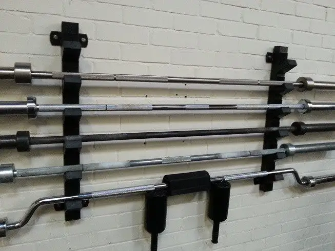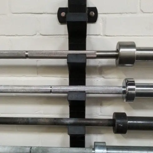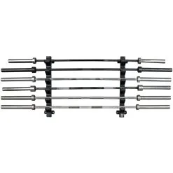 Praktische Aufbewahrungmöglichkeit für bis zu 6 Hantelstangen.