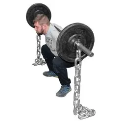 Werden jedoch beim Training Ketten an der Hantelstange befestigt, so ist die Belastung, die von der Kette selbst ausgeht, in der Standposition am höchsten und in der Hocke am geringsten, da sie dort größtenteils auf dem Boden aufliegt.