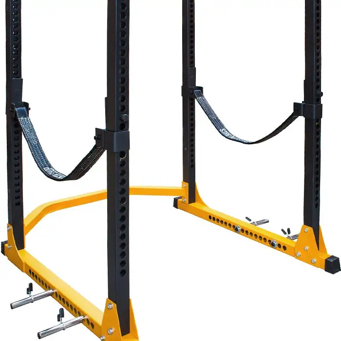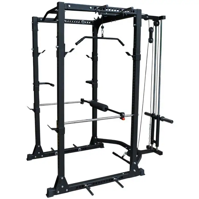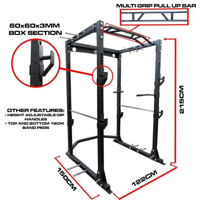 Dieser Power Cage ist bestens geeignet, um verschiedene Kraftübungen wie Kniebeugen und Bankdrücken sicher auszuführen. Im Gegensatz zu vielen anderen Cages in dieser Preisklasse, verfügt unsere Cage oben und unten über Stifte zum Anbringen von Widerstandsbändern, Dip-Stangen sowie einer Klimmzugstange. Stangenhalter im hinteren und vorderen Bereich des Cages erleichtern verschiedensten Übungen.