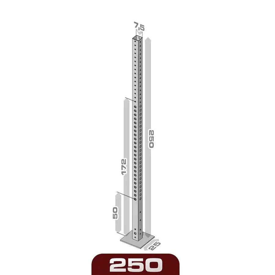 Dieser stabile Rig-Pfeiler aus Stahl mit einer Dicke von 3 mm verfügt über Löcher auf beiden Seiten, sodass Zusatzartikel wie Stangenhalter, Dip Horns und Sicherheitsstangen flexibel und in unterschiedlichen Höhen angebracht werden können.