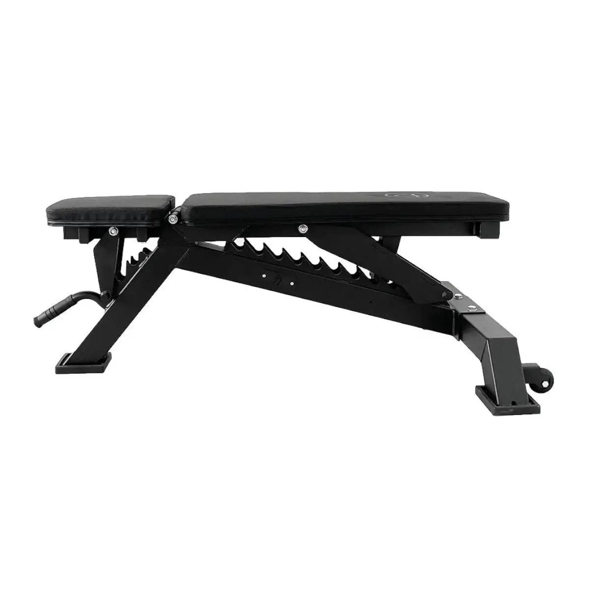 Trotz des soliden Gewichts kann die Bank leicht bewegt und verschoben werden, da sie dafür extra über einen Griff und Rollen verfügt. Gummierte Fußkappen schonen dabei den Boden und verschaffen einen sicheren Halt.
