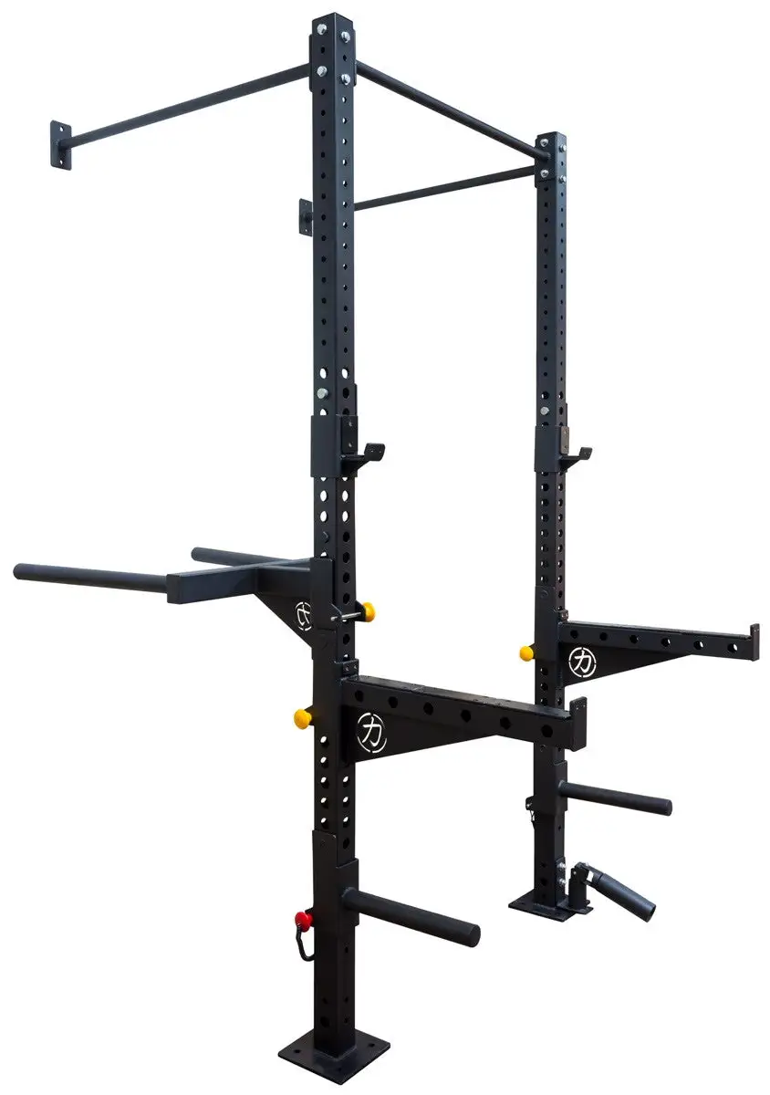 Vielseitige Trainingsstation mit 3 mm dicken Grundpfeilern aus Stahl, mit Klimmzug- und Kniebeugestation sowie Möglichkeiten für vielseitige Erweiterungen.
