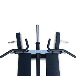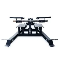 Rudern in all seinen Variationen ist ein Grundübung, wenn es nicht nur darum geht, einen breiten Rücken aufzubauen, sondern vor allem einen starken Rücken, der den unterschiedlichen Belastungen im Kraftsport gewachsen ist. Diese Übung zielt nicht nur auf den oberen Rücken und den Latissimus ab, sondern trainiert auch den Bizeps und die Schultern. Diese T-Bar Row Maschine ähnelt dem Landminen-Setup, bei dem es kein Brustpolster gibt, so dass du bei der Ausführung der Übung die gesamte Stabilisierungsarbeit leisten musst. Beladen wird die Rudermaschine mit Hantelscheiben. Um die Übung sicher auszuführen, hat das Gerät diamantbeschichtete Fußplatten und gerändelte Griffbereiche. Es gibt drei verschiedene Griffpositionen, und die Griffbreite lässt. Sie hat eine beladbare Scheibenaufnahme von 37,5cm und einen Durchmesser von 50mm. An den vorderen Füßen dieser Maschine sind Löcher für Stifte, damit du Übungsvariationen mit Bändern einfach und sicher in dein Training einbauen kannst.