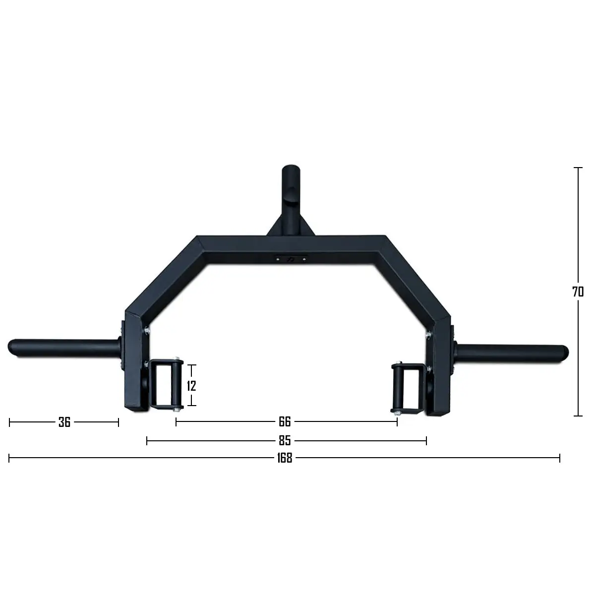 Die Bewegungen des olympischen Gewichthebens haben ihren Nutzen für andere Sportarten schon lang unter Beweis gestellt. Die beiden olympischen Disziplinen des Gewichthebens, das Reißen und das Stoßen, sind dynamische und explosive Bewegungen, die sich auch auf andere Sportarten wie American Football übertragen lassen. Dieses T-Plattform Clean & Jerk Landmine Attachment hat neutrale und um 360 Grad drehbare Griffe. Geringe oder eingeschränkte Beweglichkeit, z. B. beim Halten der Front Rack Position und der Ausführung einer Variation des C&J ist hier weniger ein Problem. Je nach Übung können die Griffe die Übungen erleichtern, aber auch anspruchsvoller machen.