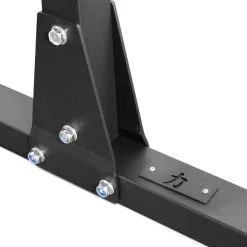 Er wird mit Catchern/Sicherheitsstangen geliefert, welche entweder für das Bankdrücken oder die Kniebeugen verwendet werden können. Zusätzlich könnt ihr auch noch J-Haken bestellen und damit die Catcher als Sicherheitsstange verwenden.
